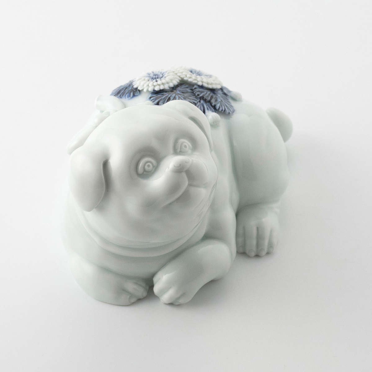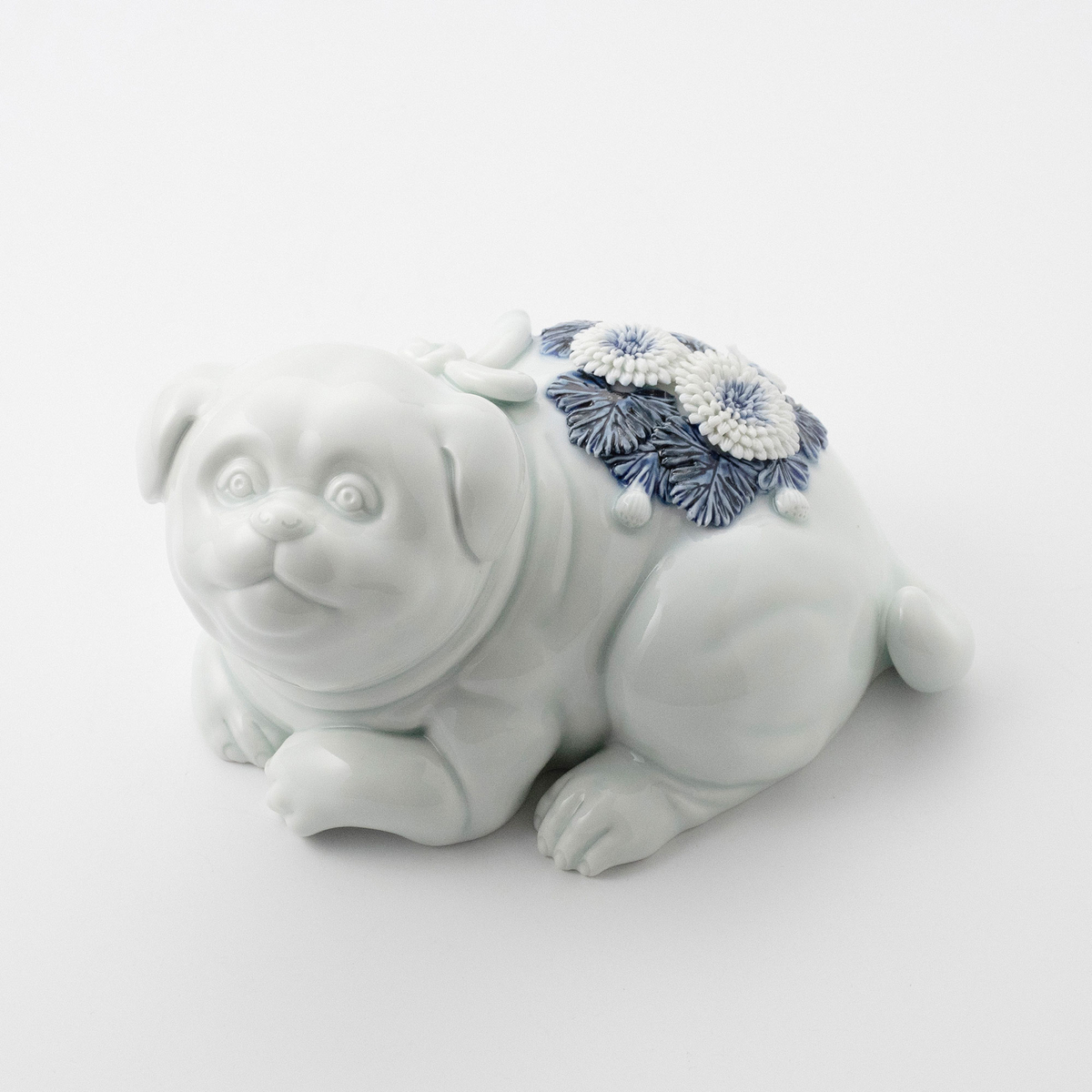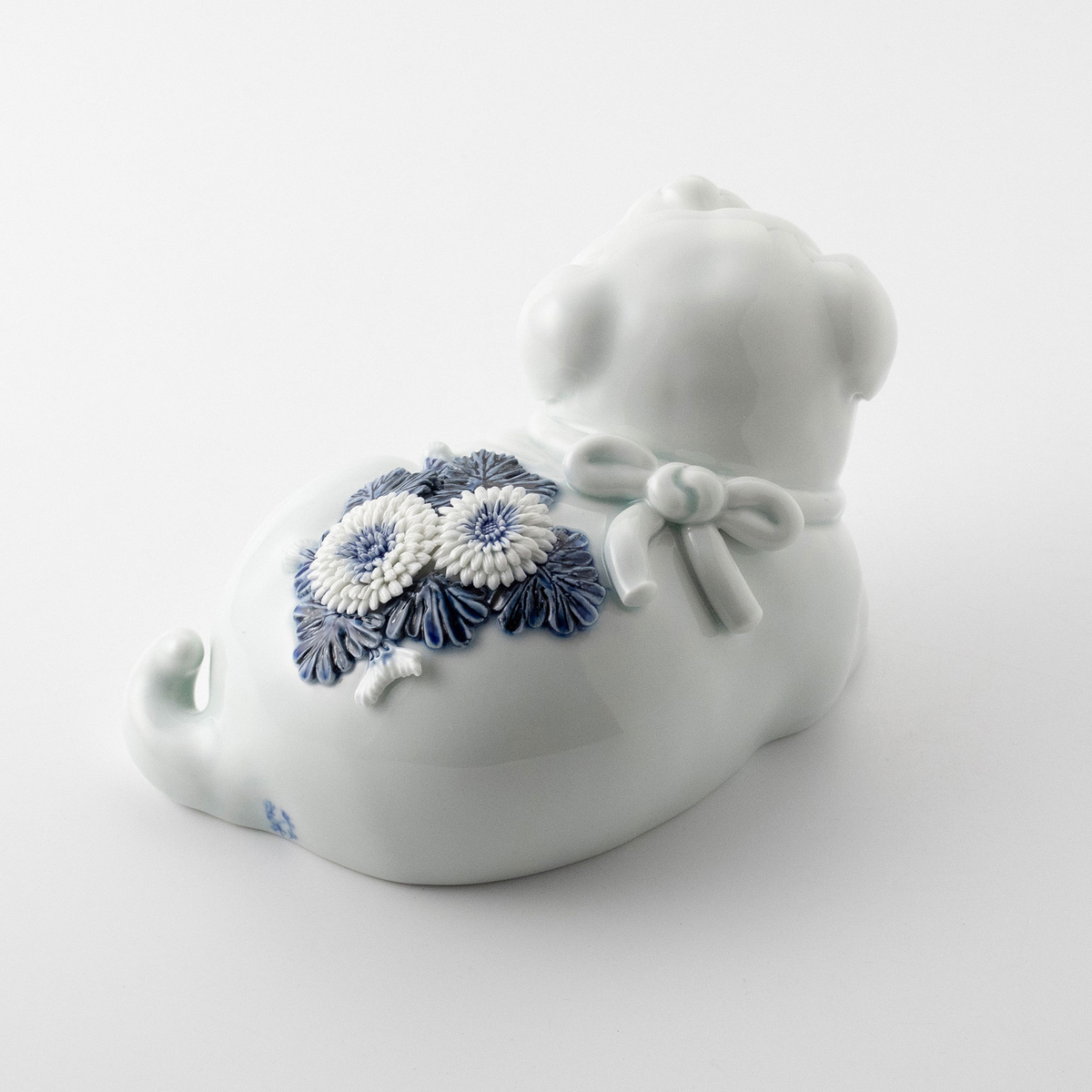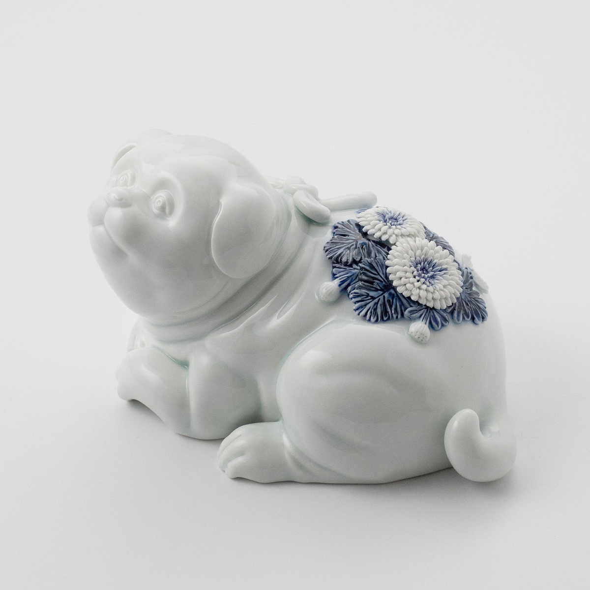 【平戸洸祥団右ヱ門窯】平戸菊花飾染付戌置物(菊二輪) *受注生産