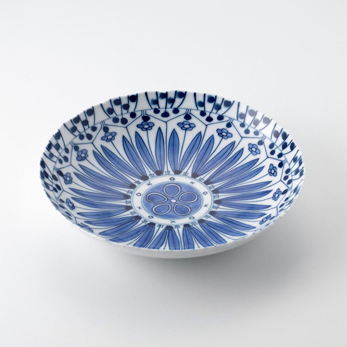【啓祥窯】花柄絵七寸深皿