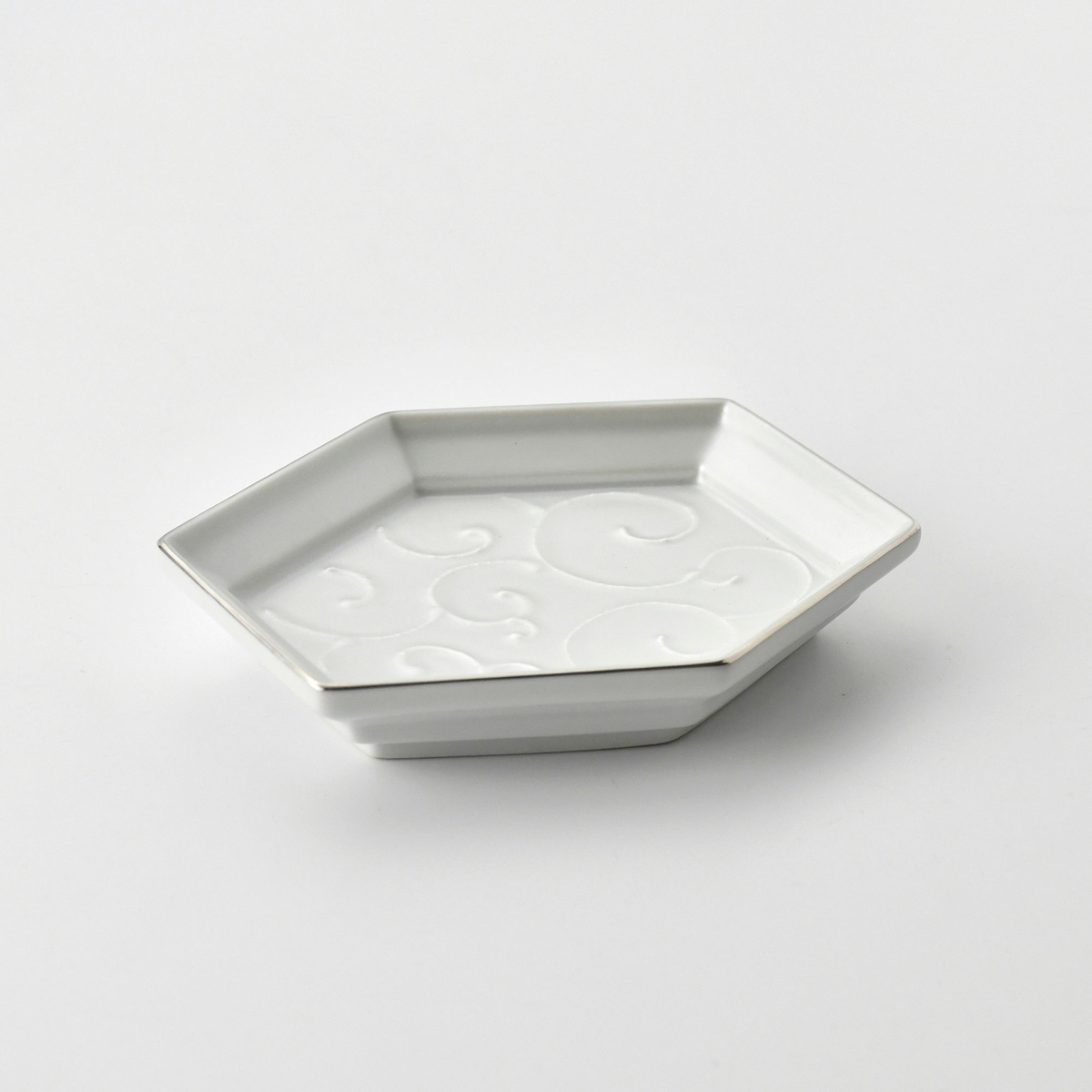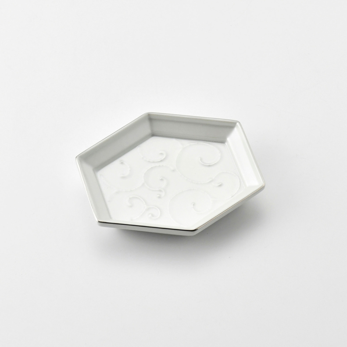 【嘉祥窯】[六角]銀彩唐草豆皿
