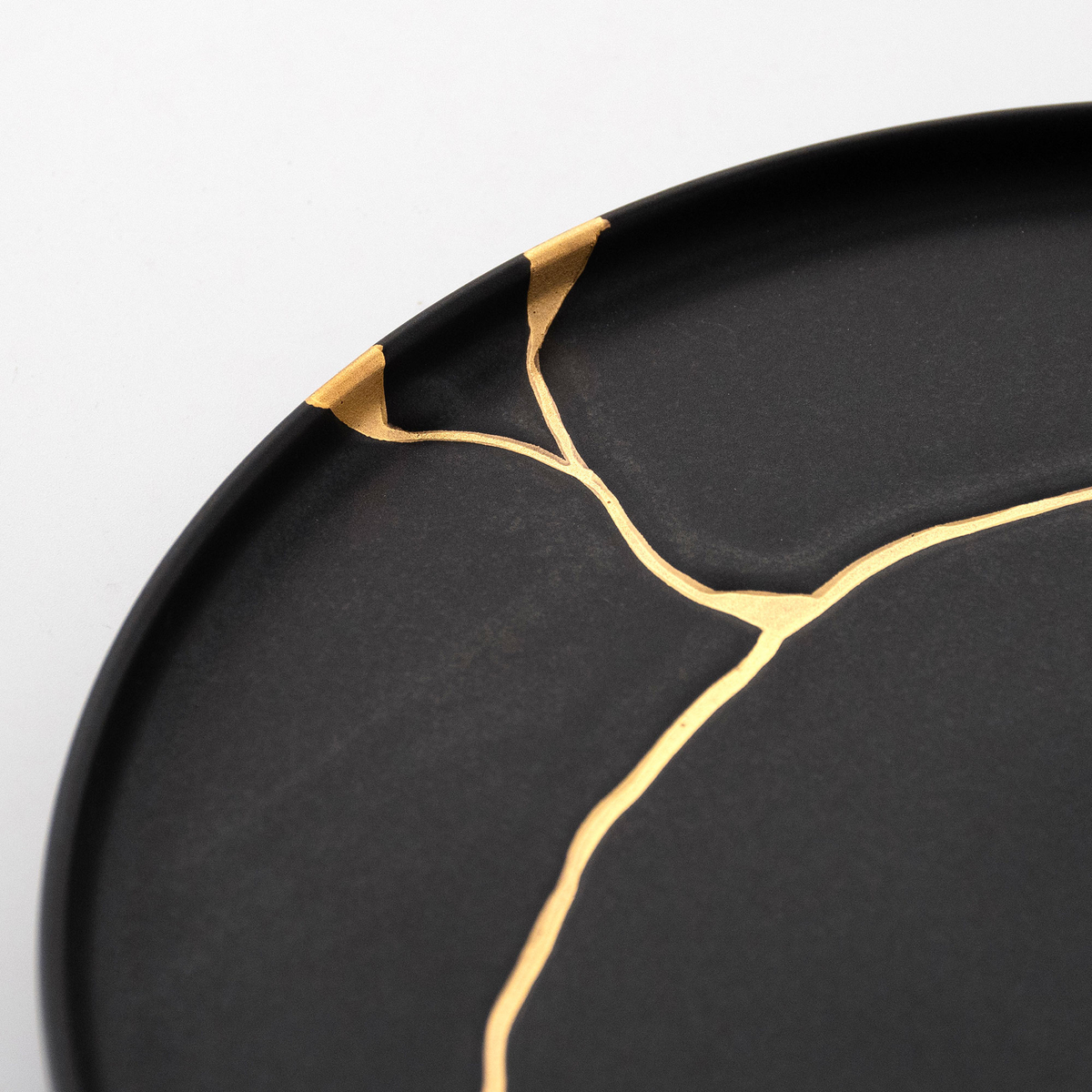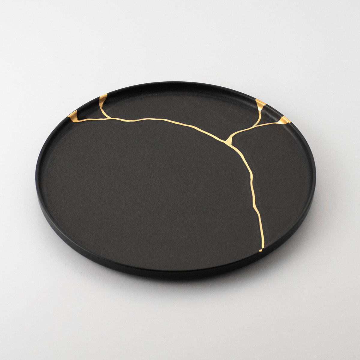 【嘉祥窯】[悠シリーズ]黒マット金継 24cmプレート