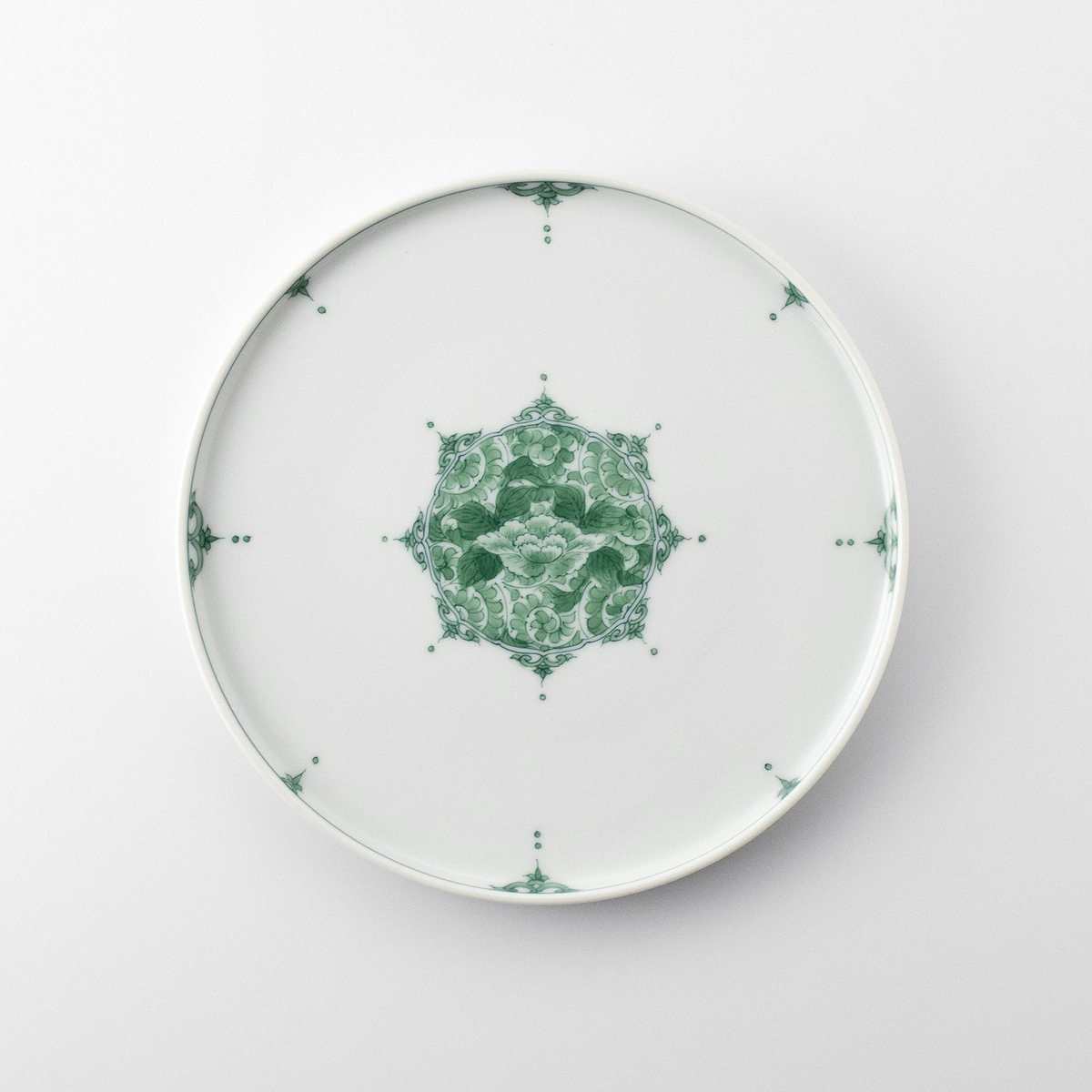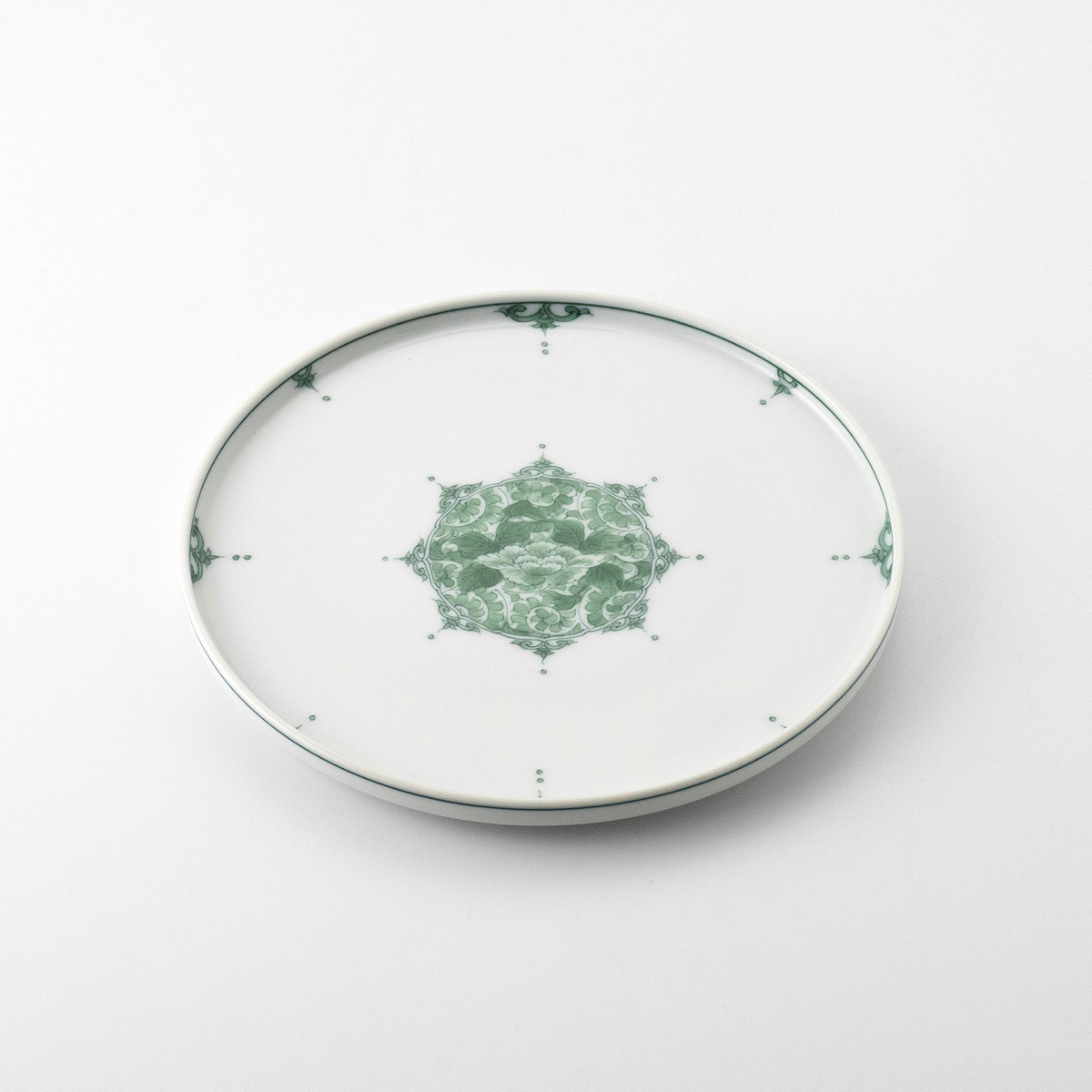 【平戸松山窯】[悠シリーズ]間取り牡丹唐草 18cmプレート皿(クロム)