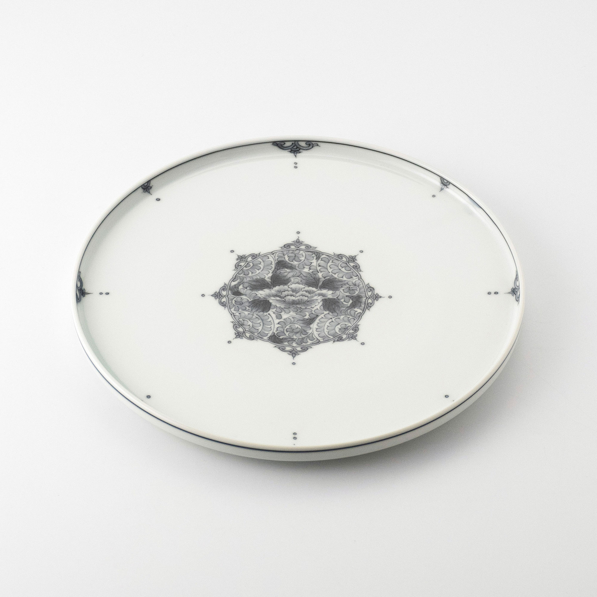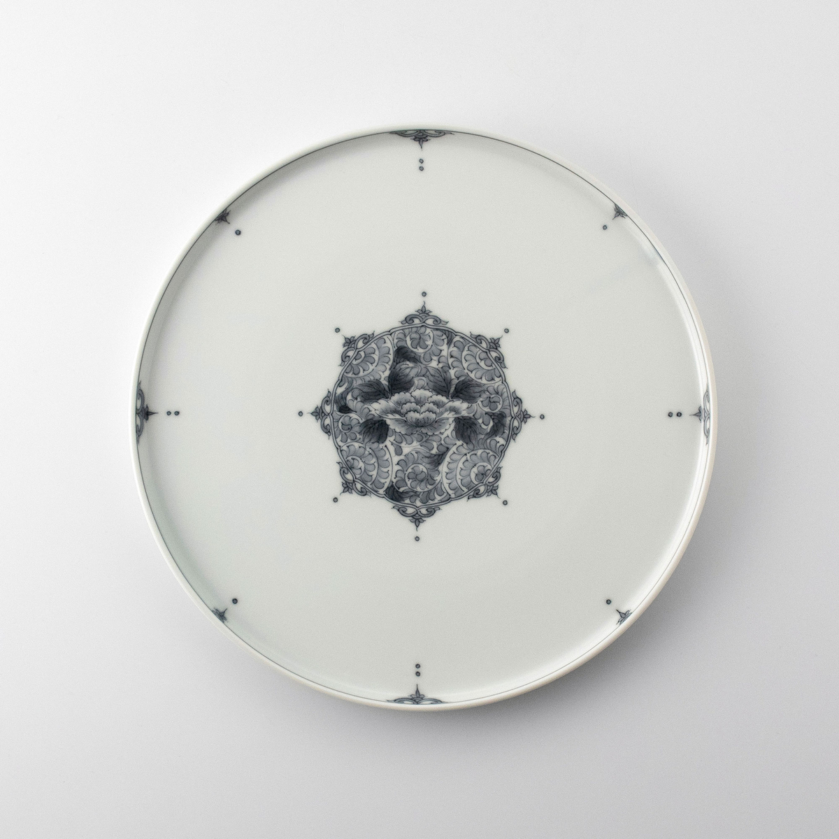 【平戸松山窯】[悠シリーズ]間取り牡丹唐草 24cmプレート(墨呉須)