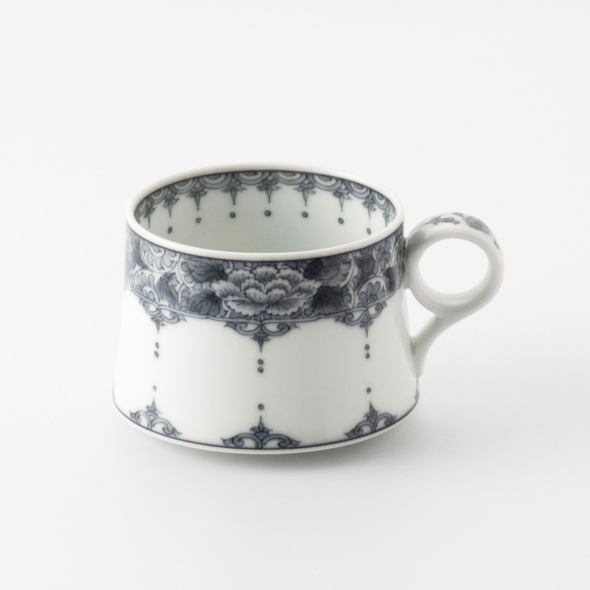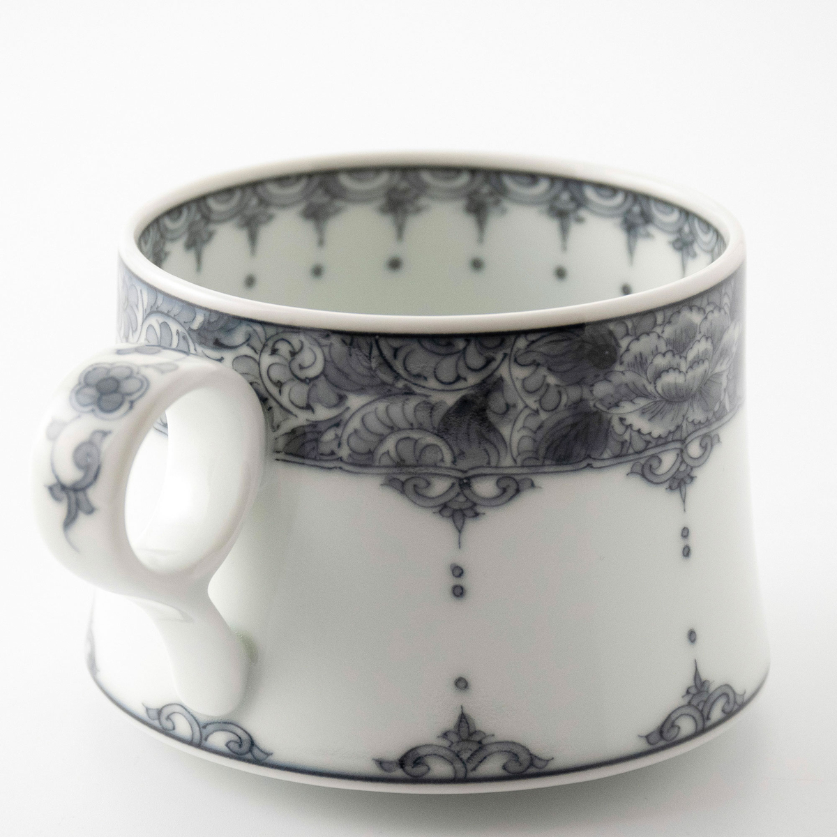 【平戸松山窯】間取り牡丹唐草 マグカップ 墨呉須