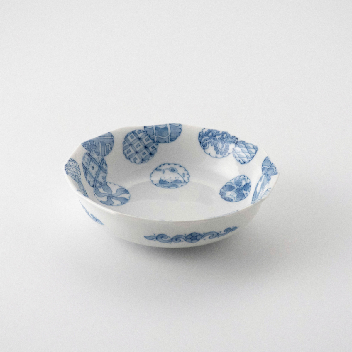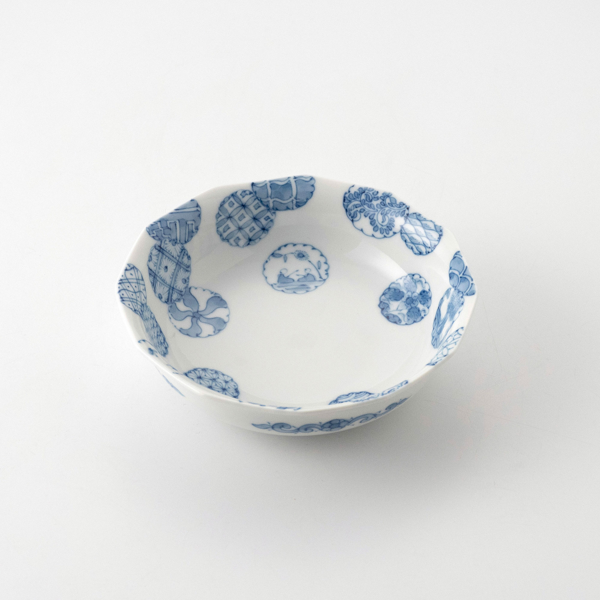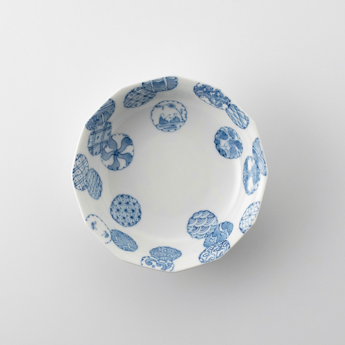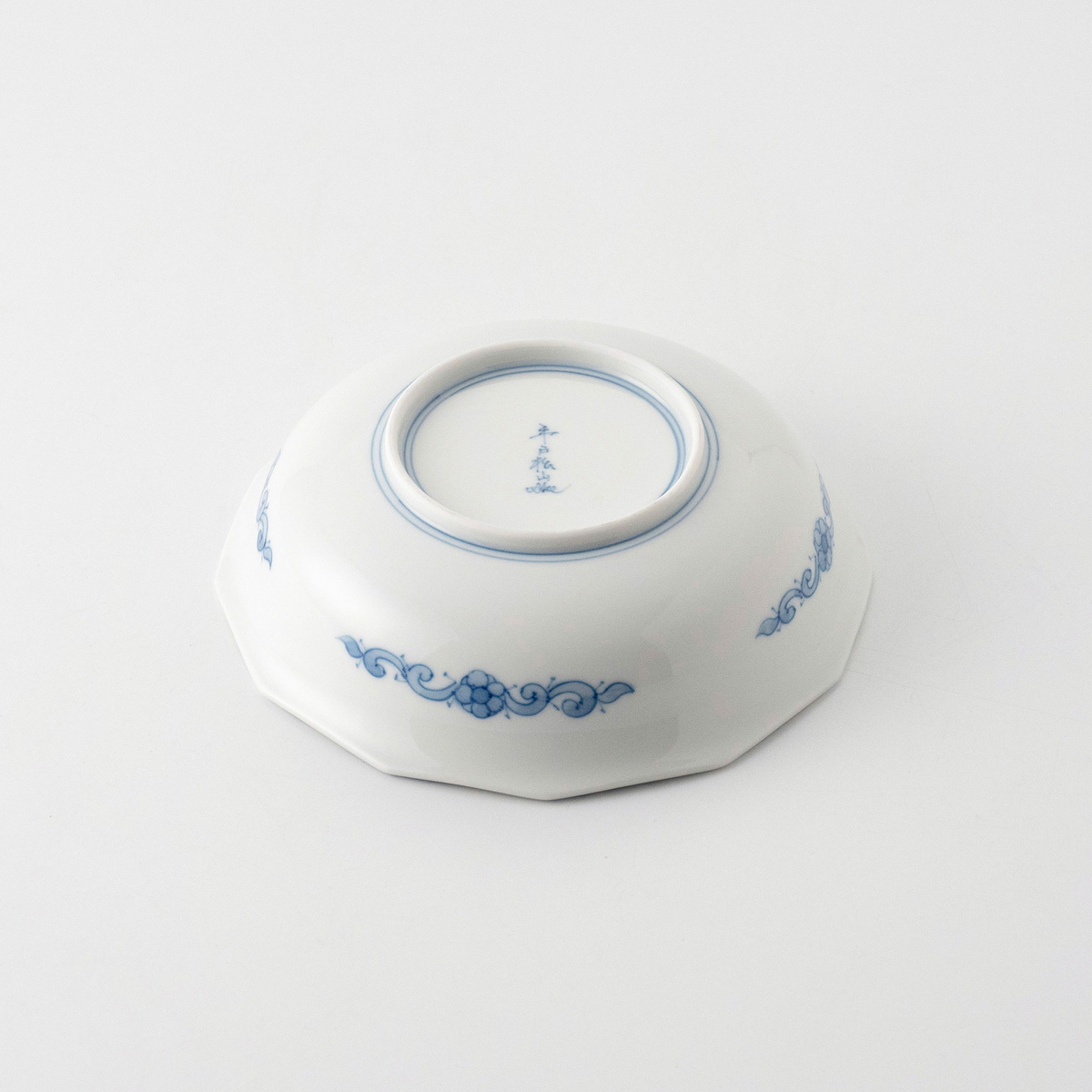 【平戸松山窯】平戸染付 花丸紋十二角取鉢(小)